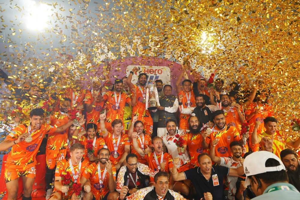 Rourkela, 1st February 2025: The champions of the Hero Hockey India League, Shrachi Rarh Bengal Tigers, emerged victorious in a thrilling finale of the Men’s Hero Hockey India League 2024-25 season. They clinched the title with a hard-fought 4-3 win over Hyderabad Toofans at the electrifying Birsa Munda International Hockey Stadium in Rourkela. Gonzalo Peillat (9’, 39’) and Amandeep Lakra (26’) scored for Hyderabad Toofans, but Jugraj Singh’s hat-trick (25’, 32’, 35’) and a crucial goal from Sam Lane (54’) ensured Shrachi Rarh Bengal Tigers’ triumph, cementing their place as the champions of the Hero Hockey India League.